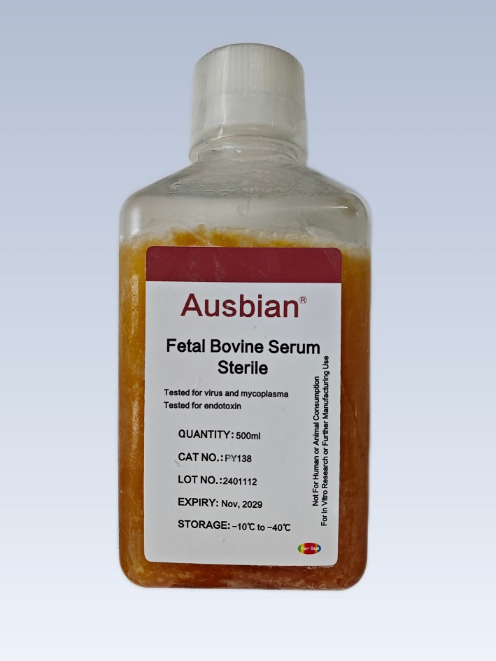 Ausbian特级胎牛血清(南美血源),精选南美血源内毒素更低的胎牛血清批次,内毒素含量≤3EU/ml,可用于用于常规细胞的培养,如传代细胞系、肿瘤细胞系、部分原代细胞等基础细胞系的相关科学研究,为细胞的体外培养实验提供营养支持。